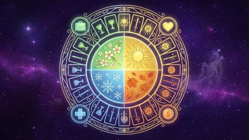 获取完整年度塔罗运势,按季度解析事业、爱情、财富、健康四大维度